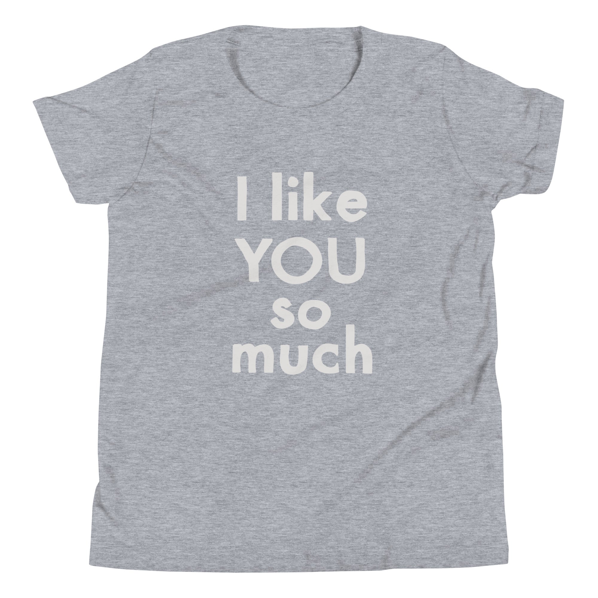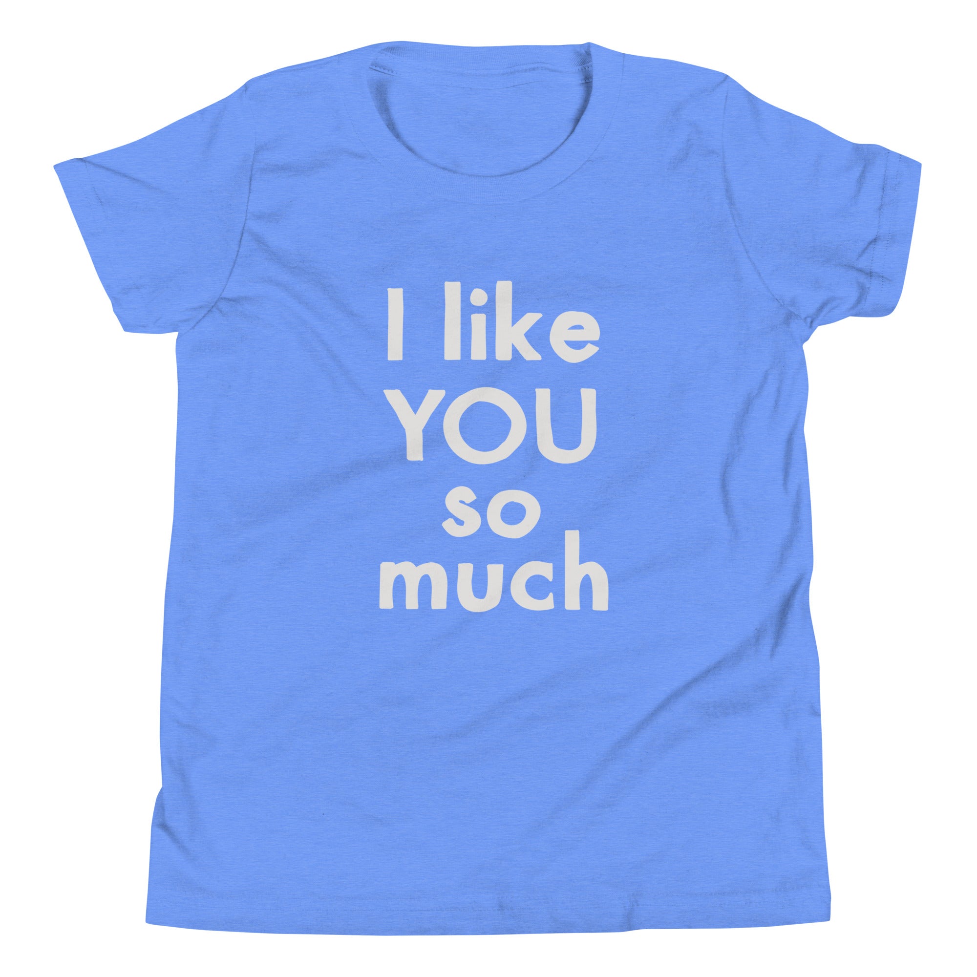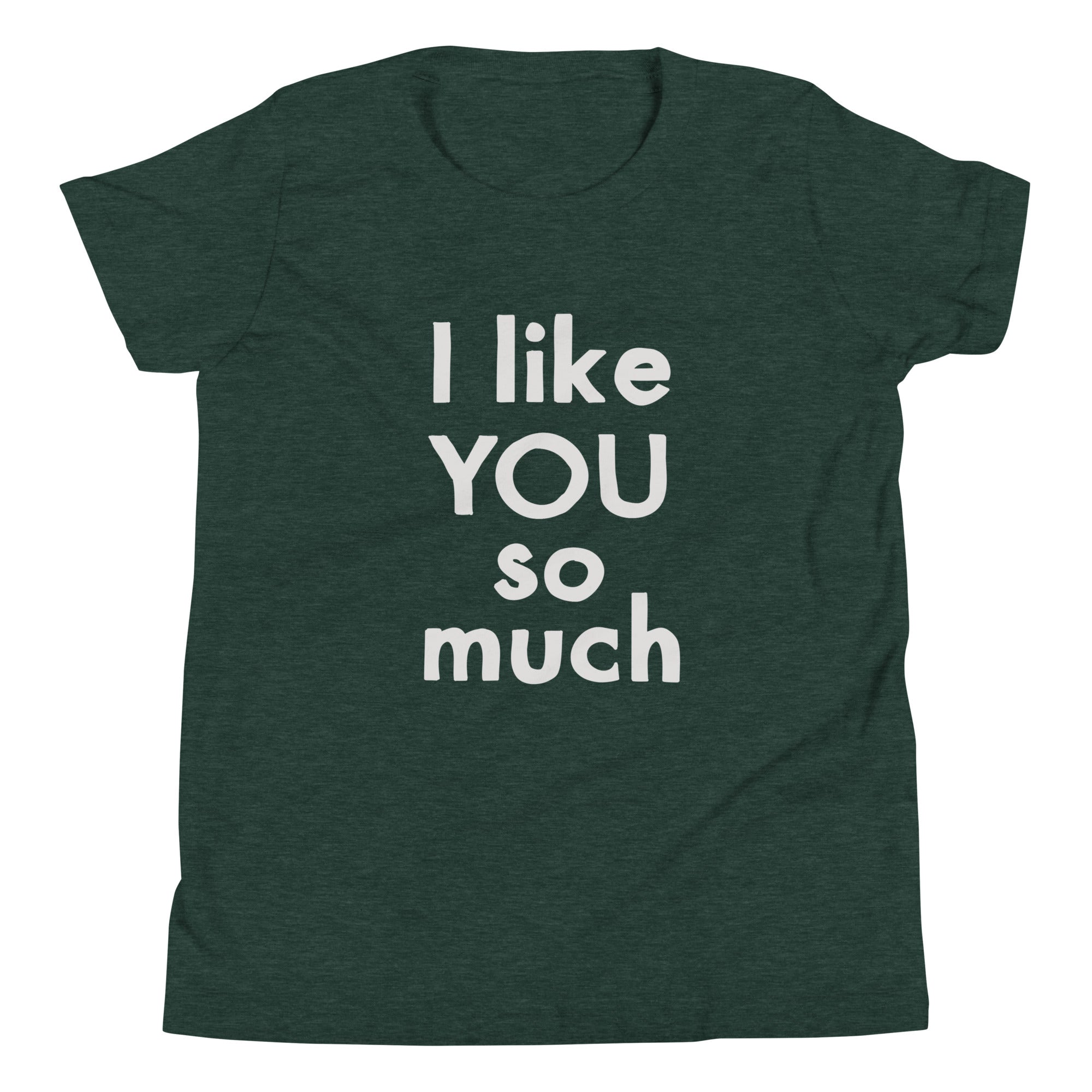 Introducing our new I Like You So Much! Youth tee—designed to celebrate the truth that you are good and loved exactly as you are. Inspired by Heather Avis’s heartwarming new children’s book, this unisex staple is soft, light, and just the right amount of stretchy—flattering, comfortable, and totally likeable (just like you!). Featuring DTG-printed “I Like You So Much” lettering on the front and a sweet, storybook-style yellow bird—illustrated straight from the pages of the book on the back. This shirt is so so comfy, and totally likeable (just like you!).